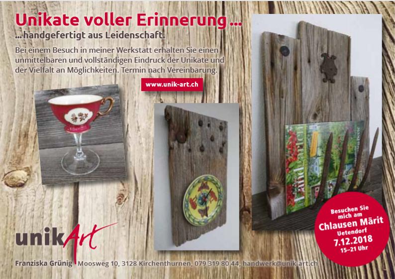 Am 7. Dezember stelle ich meine Werke am Weihnachtsmarkt Uetendorf aus (siehe Flyer).